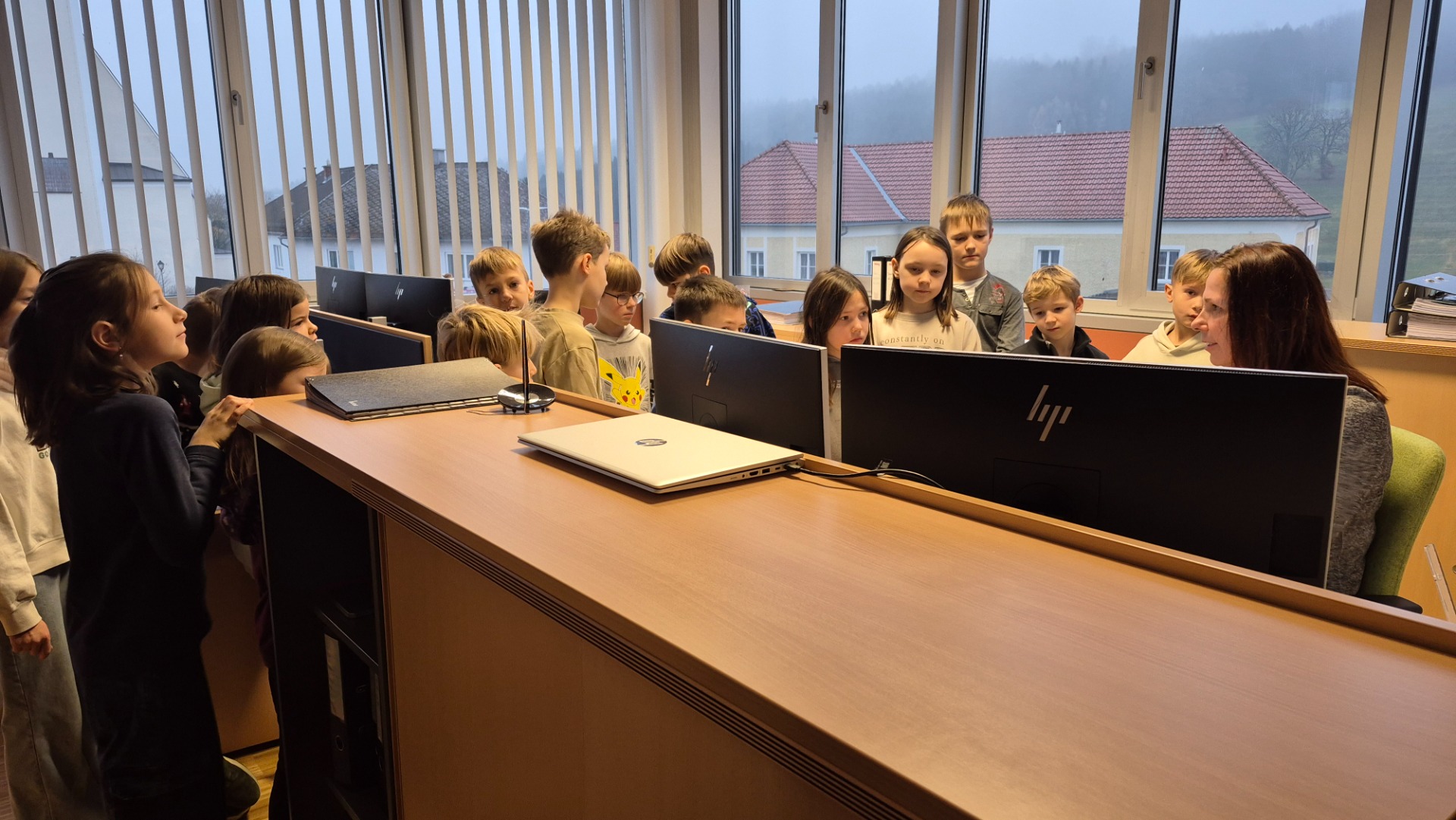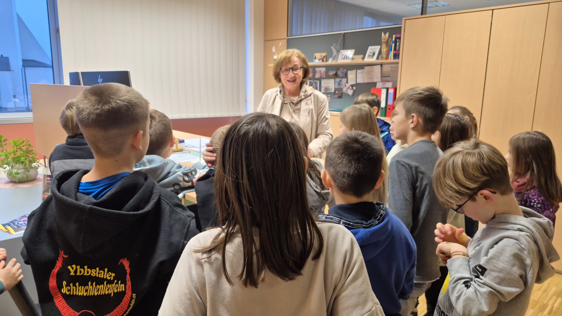 Frau Bürgermeisterin Maria Kogler führte uns durch das Gemeindeamt und erklärte uns die Aufgabenbereiche der Gemeindebediensteten. Wir konnten mit den Angestellten sprechen und bekamen einen Einblick in ihre Arbeit. Zum Abschluss plauderten wir mit der Frau Bürgermeisterin im Sitzungssaal über die Aufgaben des Gemeinderates und hatten die Möglichkeit Fragen und Wünsche zu deponieren. Danke für die tolle Führung durch das Gemeindeamt!