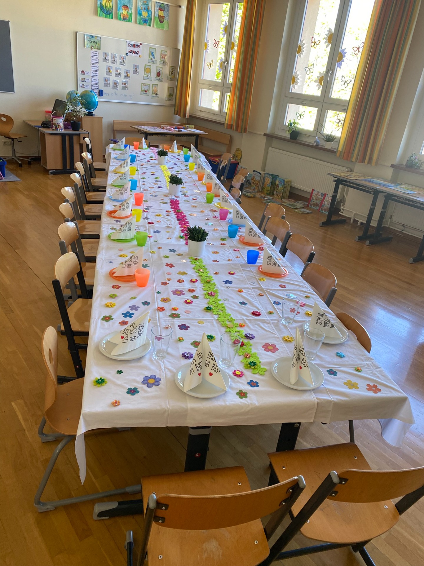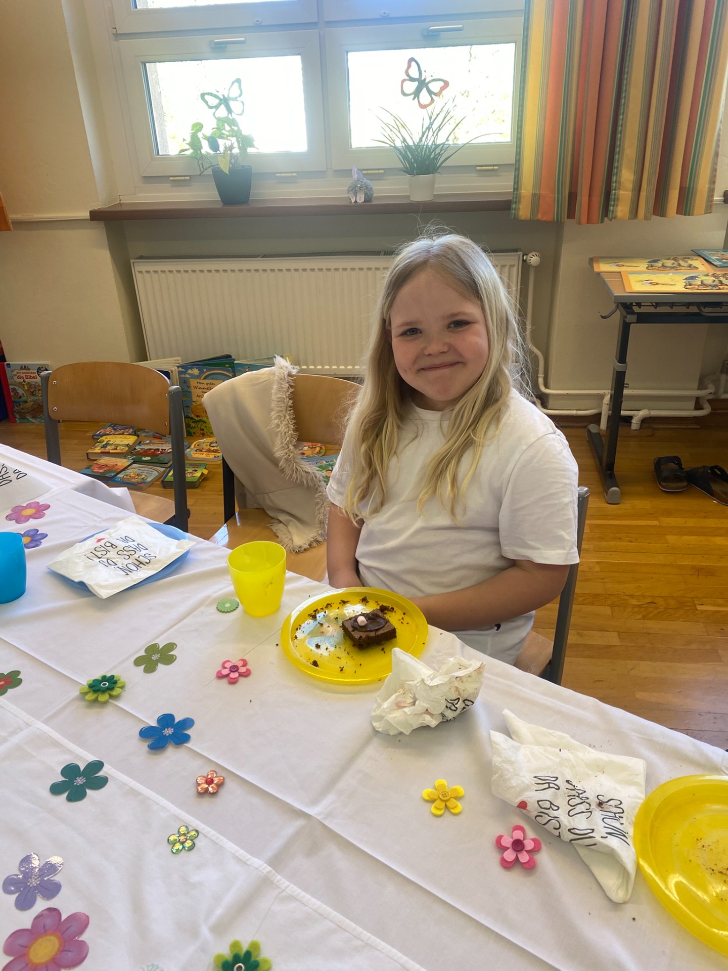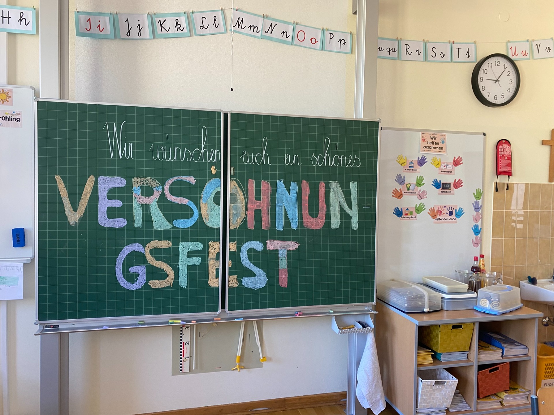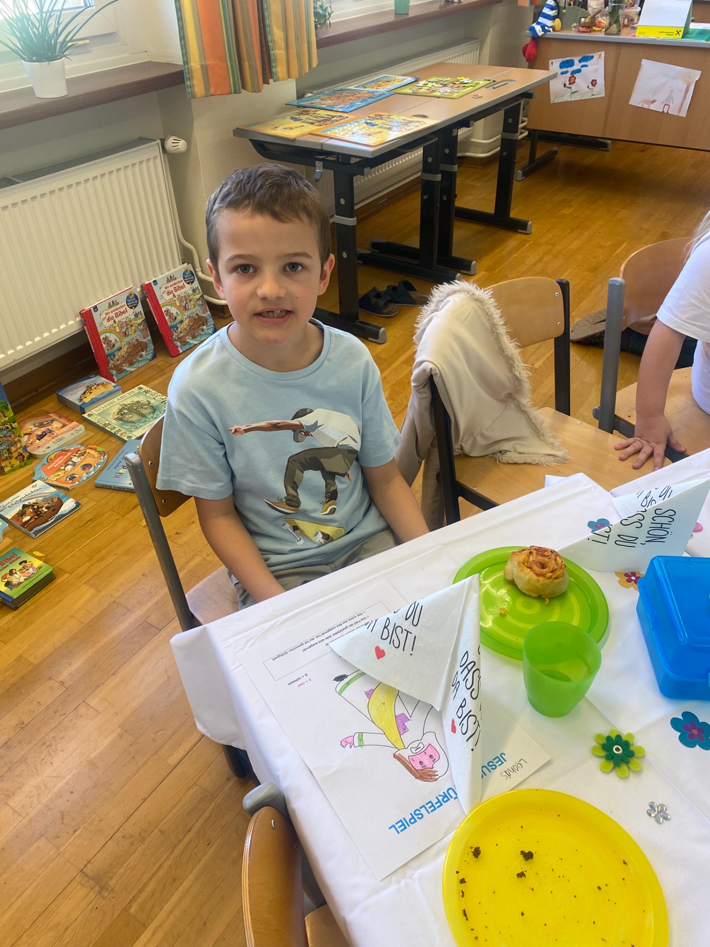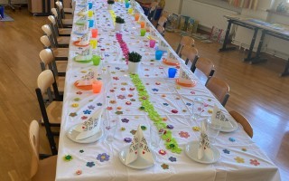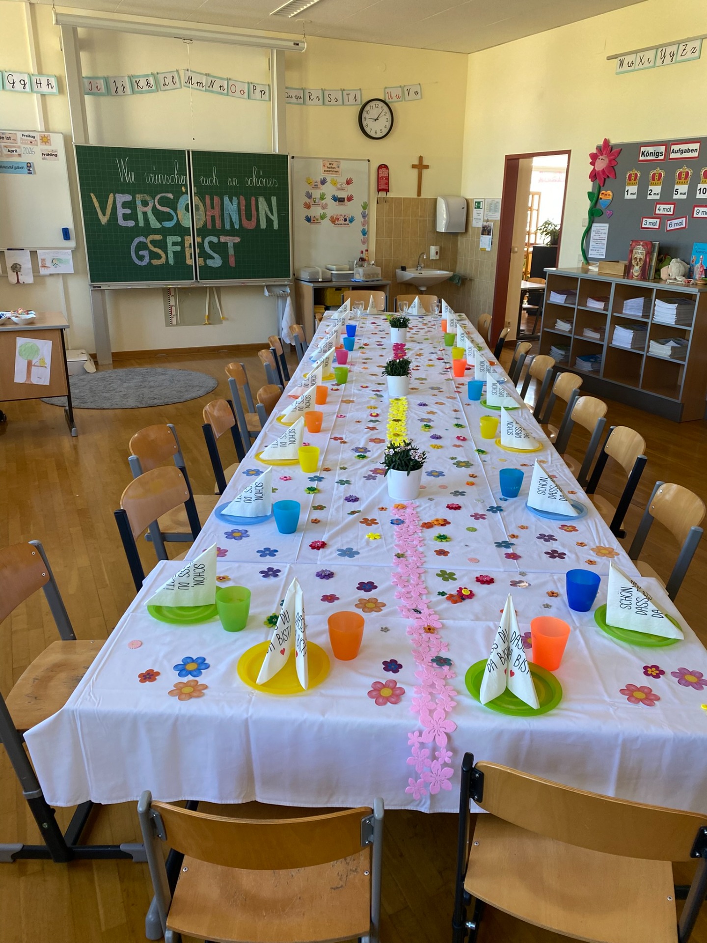 Am 24. April 2026 haben wir unser Versöhnungsfest gefeiert. Zuerst waren wir mit Frau Schauberger im Musikraum und haben eine Geschichte aufgebaut. Danach sind wir in den Pfarrhof gegangen. Zurück in der Schule haben wir Kuchen gegessen und Spiele gespielt. Die 2a hat den Tisch sehr schön für uns gedeckt. Es war ein tolles Fest!